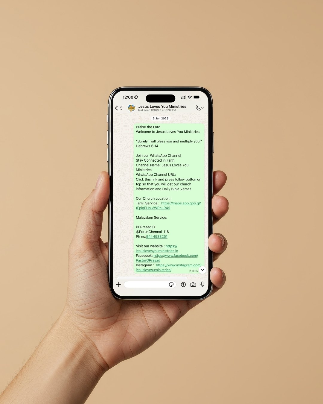 Established in 2010 by Pr. O Prasad, “Jesus Loves You Ministries “ had its humble beginnings in the vibrant community of Porur. Pr. Prasad’s visionary leadership ignited the spark of faith and love, which has since grown into a thriving ministry. Our roots in Porur are a testament to the enduring commitment of our founder, and we are dedicated to spreading the message of Christ’s love and teachings in this wonderful area. With the grace of God and the unwavering support of our local community, we continue to be a source of spiritual growth and devotion for all who seek the love and wisdom of Jesus Christ.